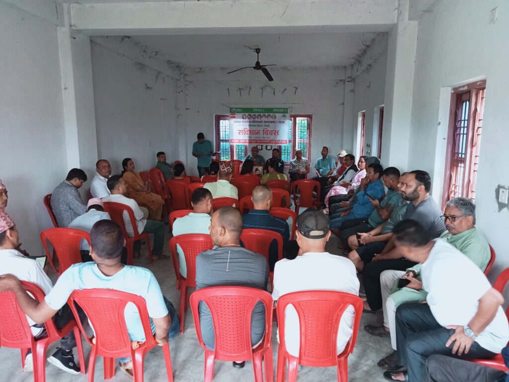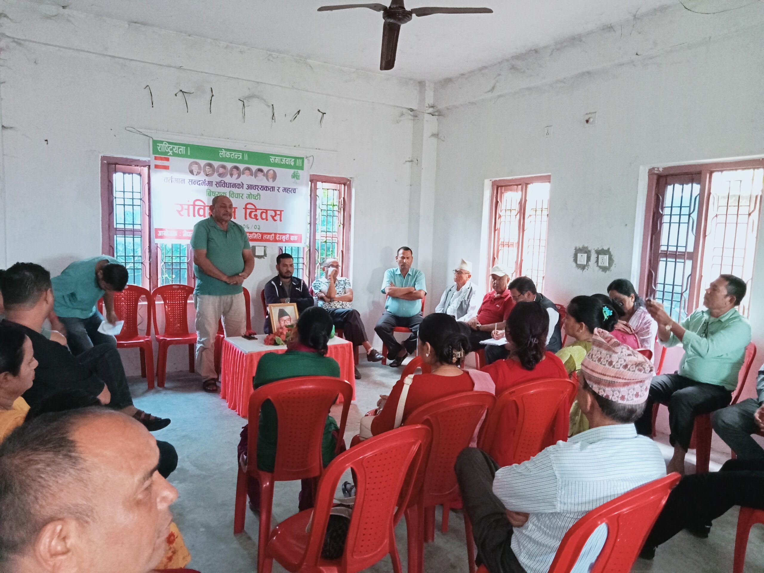 किरण चौधरीको स्वागत मन्तब्यबाट शुरु भएको कार्यक्रममा जिल्ला सदस्य गोबिन्द रेग्मी, प्रदेश सदस्य कुमार घिमिरे, प्रदेश महाधिवेशन प्रतिनिधि घनश्याम सुवेदी, नेपाल थारु संघ क्षेत्रीय सदस्य गोकुल प्रसाद चौधरी, नेपाल मुस्लिम संघका सचिव नवाफ अली, तथा महाधिवेशन प्रतिनिधि मधु न्यौपानेलगायतले आ–आफ्ना धारणा राखेका थिए । वक्ताहरूले संविधानले ल्याएको सामाजिक, आर्थिक र राजनीतिक अधिकारको रक्षा गर्न सबै सचेत रहनुपर्नेमा जोड दिएका थिए । वक्ताहरूले संविधानले देशलाई संघीय लोकतान्त्रिक गणतन्त्रको बाटोमा अघि बढाएको र यसले नागरिकलाई मौलिक अधिकारसहित समान अवसर प्रदान गरेको बताए । उनीहरूले संविधान कार्यान्वयनमा अझै केही कमजोरी देखिएको भए पनि यसको आधारमा मुलुकलाई राजनीतिक, सामाजिक र आर्थिक रूपमा सबल बनाउन सकिने विश्वास व्यक्त गरे ।