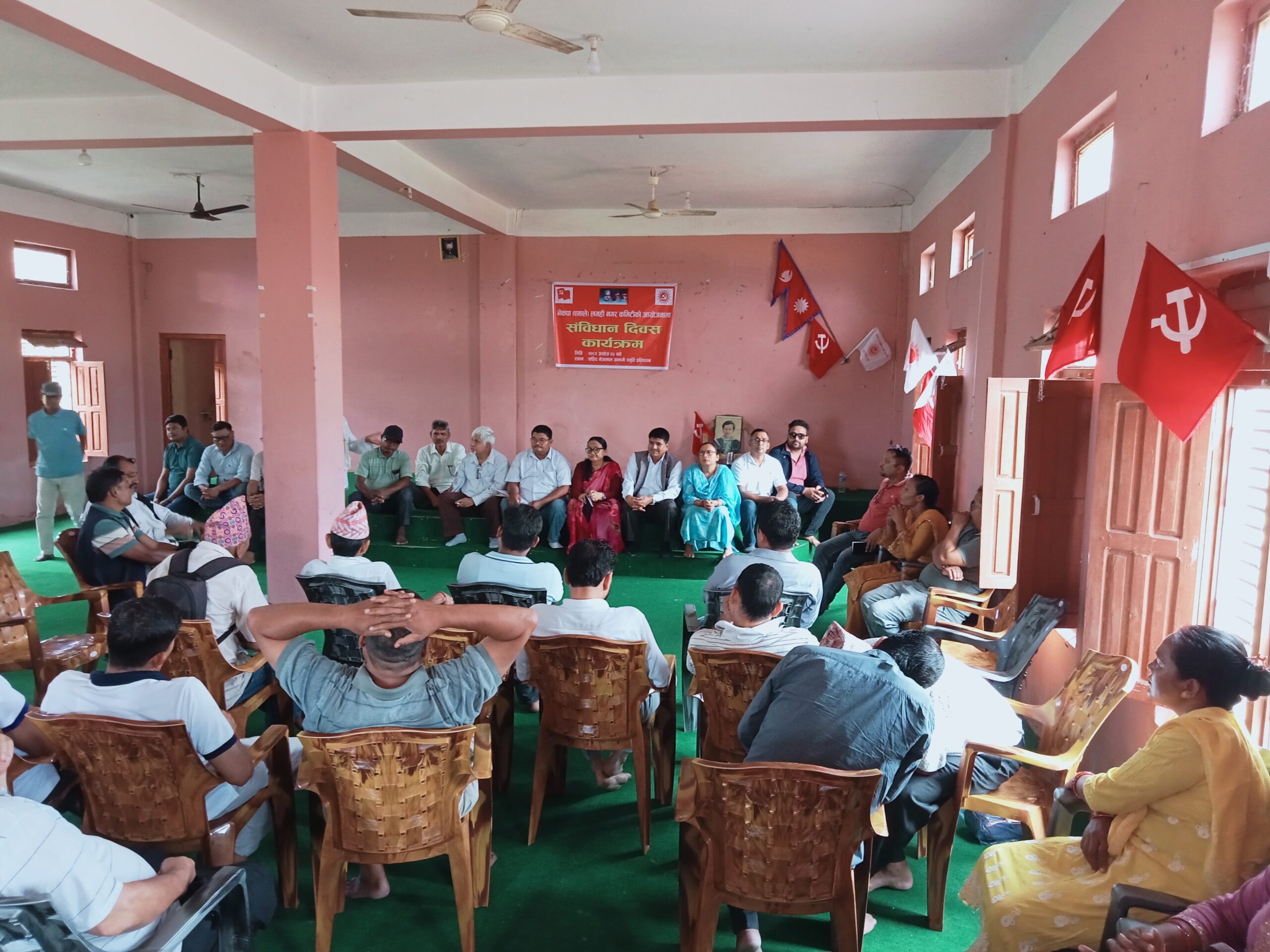 दाङ । नेपालको संविधान जारी भएको ११ वर्ष पूरा भएको अवसरमा लमहीमा नेकपा (माओवादी केन्द्र) ले दीप प्रज्वलन कार्यक्रम सम्पन्न गरेको छ । लमही नगर कमिटीको आयोजनामा संविधान दिवसका दिन विशेष कार्यक्रम गरी संविधानप्रति सम्मान व्यक्त गर्दै पार्टीले लोकतन्त्र, समावेशीता र सामाजिक न्यायको आधारलाई थप मजबुत बनाउन सबैलाई आह्वान गरेको हो ।