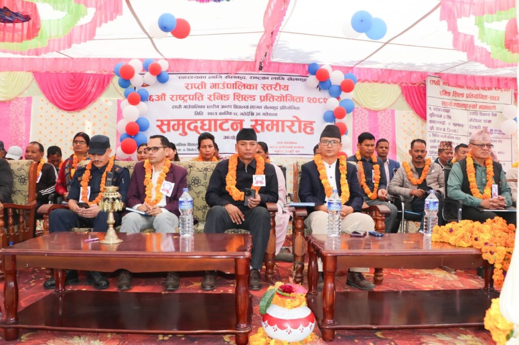 राप्ती गाउँपालिका वडा नं.४ का अध्यक्ष एवं विद्यालय व्यवस्थापन समितिका अध्यक्ष बीरबहादुर चौधरीको स्वागत मन्तव्यबाट सुरु भएको कार्यक्रमको सञ्चालन विद्यालयका शिक्षक बासुदेव रिजालले गरेका थिए ।प्रतियोगितामा २१ सामुदायिक र १४ संस्थागत गरि ३५ विद्यालयका विद्यार्थीहरूको सहभागीता रहेको छ । प्रतियोगितामा छात्र र छात्रा तर्फ अलग अलग भलिबल, कबड्डी, एथ्लेटिक्स, मार्सल आर्ट हाइजम्प, लङजम्प, त्रिपलजम्प, ज्यावलिङ थ्रो, सटफुट, कराँते लगायतका खेलहरु समावेश गरिएको छ ।