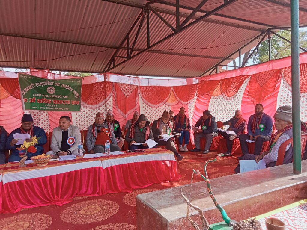 देउखुुरी, ६ पुस । लमही स्थित अजम्मरी सामुदायिक वनको १९ औँ वार्षिक साधारण सभा सम्पन्न भएको छ । सामुदायिक वनका अध्यक्ष पवन शर्मा रिजालको अध्यक्षता तथा डिभिजन वन कार्यालय देउखुरीका सिनियर डिभिजन वन अधिकृत जीवन पंगेनिको प्रमुख अतिथि एबम् सामुदायिक वन स्थानीय उपभोक्ता वन महासंघ लमहीका अध्यक्ष पूर्णबहादुर बस्नेतको विशिष्ट आतिथ्यमा कार्यक्रम भएको हो ।
